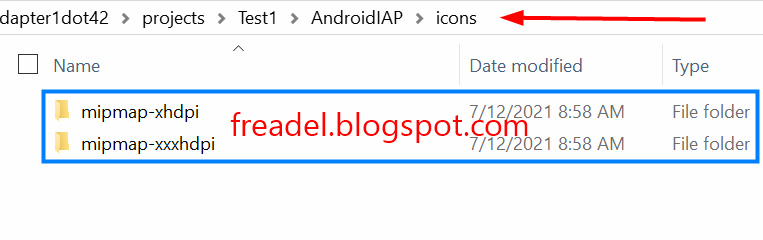 Copy all those files and folders into the mentioned directory above ((adapter folder)>projects>(your project name in my case it is 'Test1')>AndroidIAP)
