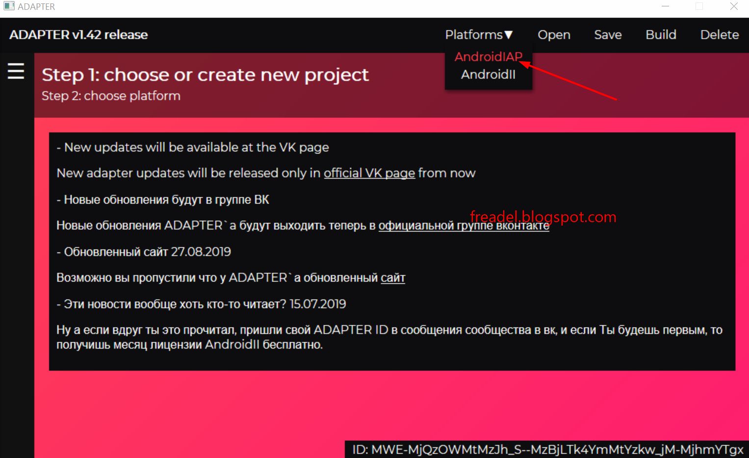 6. And then choose which platform you will export your project to. To export to Android as .apk choose 'AndroidIAP'.